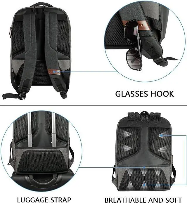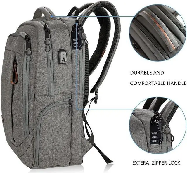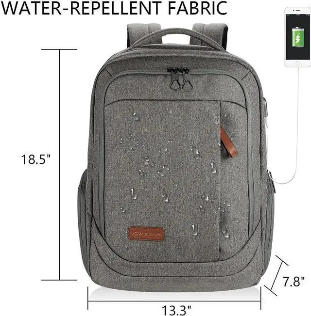 Laptop Backpack Large Computer Backpack Fits up to 17.3 Inch Laptop with USB Charging Port Water-Repellent Casual Daypack for Travel/Business/College/Women/Men-Grey