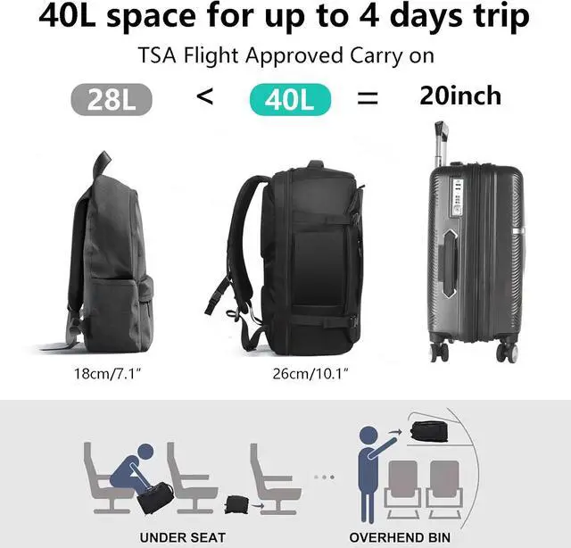 The luggage backpack is constructed to be most comfortable over hours of carrying, An adjustable chest help transfer weight off your shoulders, Reduce weight and pressure on the shoulders, providing a better wearing experience, A strap on the back for luggage pass-through and 3D padded backboard and molded thick shoulder straps.