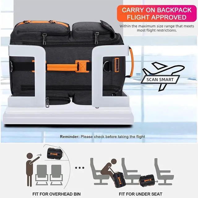 The travel backpack's main compartment with a laptop pocket for 12 to 17 inch laptop roomy space to store different travel gears. The travel backpack is large enough for vacation, weekend getaway, overnight trip.