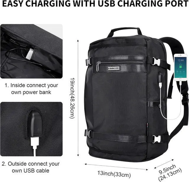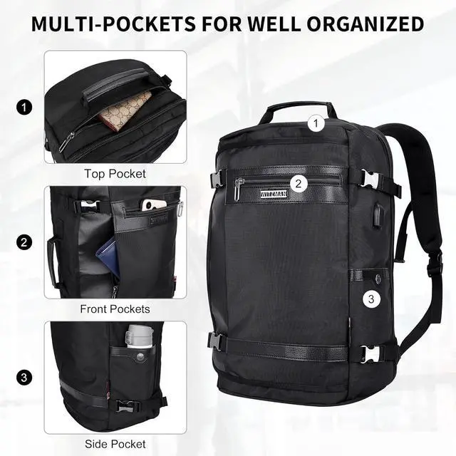 The main compartment can be accessed from the quick access front pocket for easy removal of travel essentials during travel. The main compartment can also be zippered like a suitcase for easy packaging and unpacking. This multifunctional luggage back pack meets the TSA Flight Approved requirements, it's idea for airplane travel. The computer compartment can be opened at 90 ° to 180 ° for security scanning, helping to quickly and easily pass airport security checks;