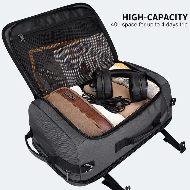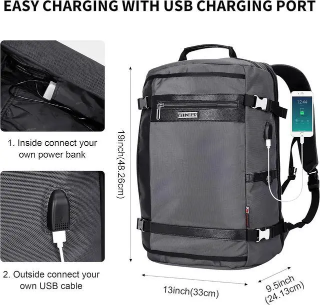 The main compartment can be accessed from the quick access front pocket for easy removal of travel essentials during travel. The main compartment can also be zippered like a suitcase for easy packaging and unpacking. This multifunctional luggage back pack meets the TSA Flight Approved requirements, it's idea for airplane travel. The computer compartment can be opened at 90 ° to 180 ° for security scanning, helping to quickly and easily pass airport security checks;