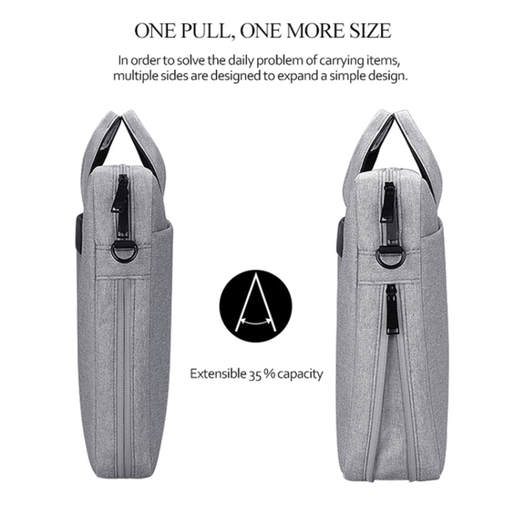 DJ06 Oxford Cloth Waterproof Wear-resistant Portable Expandable Laptop Bag for 14.1 inch Laptops, with Detachable Shoulder Strap (Grey)