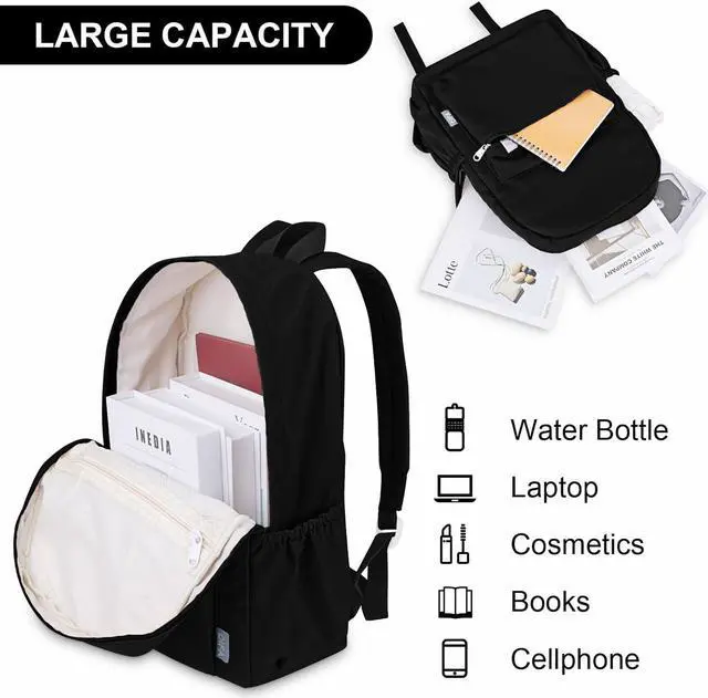 LARGE CAPACITY Size: 16.93 x 11.42 x 5.12 in. The storage space of this aesthetic backpack is big enough for iPad, laptop, cell phone, wallet, water bottle, etc.