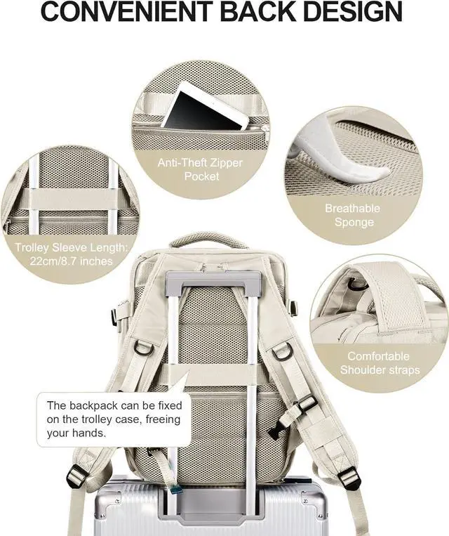 Anti-theft Multifunctional Backpack: With trolley sleeves, the backpack can be slipped on the drawbar for easy portability. There is a hidden anti-theft pocket on the back to protect your valuables from theft. Perfect as an everyday backpack, laptop backpack and casual backpack for weekend getaway trips.