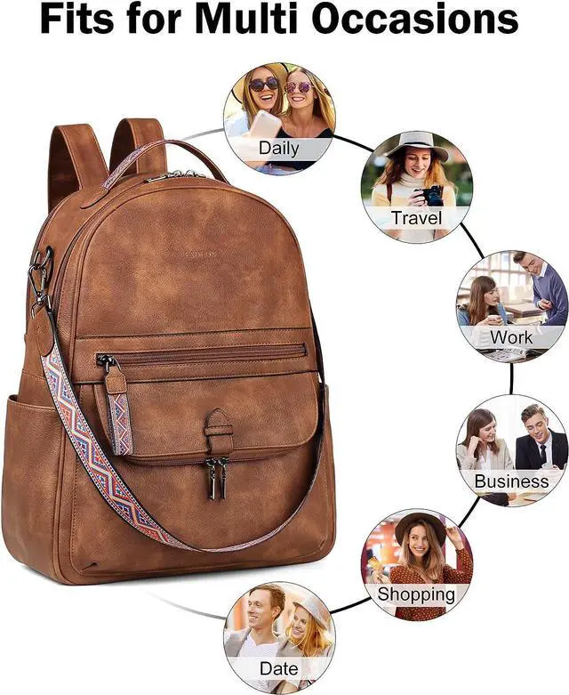 Material: This womens leather laptop backpack is made of the newest waterproof PU leather which is soft and retro, gun color hardware zipper which is smooth and not stuck, strap and backpack connection port reinforced design, make the backpack more durable. so this waterproof vegan leather laptop backpack can deal with a variety of scenarios, such as light rain days, snow days. This is a sturdiness laptop backpack.