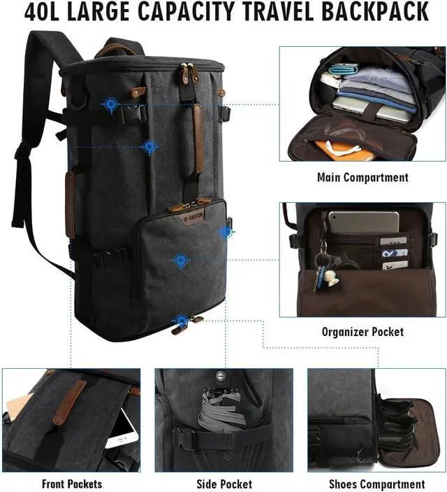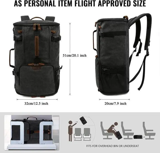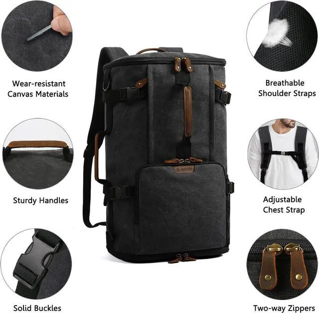 MULTI-FUNCTIONAL. This canvas backpack can be used as carry on travel backpack, work bag, daypack, overnight bag, weekender bag, travel bag. Backpack for travel, hiking, outdoor, and camping.
