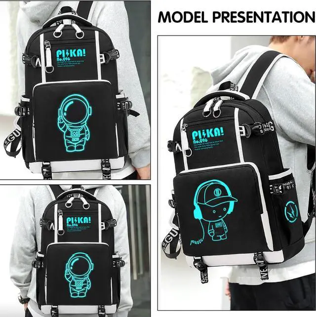 USB CHARGING&NIGHT LIGHT FUNCTION: The side of the cute backpack has a USB charging port and a headphone jack, which can be easily charged while walking, completely freeing your hands. The creative cartoon music character design can emit light at night, which makes the travel backpack for men full of high-end and more unique.