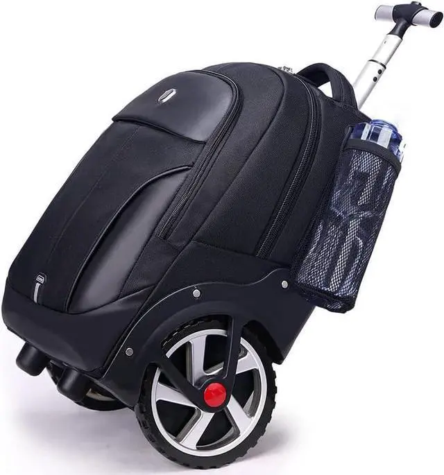 LARGE WHEEL BACKPACK: Rolling Backpack have 18CM (7inch) Wider large Wheel, steady, heavy loading, saving labour and time, easy thru airplane aisles and stair, do not worry the wheels turned sideways, also do not worry wear off the backpack
