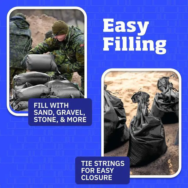 | Included Components | 100 Heavy Duty Empty Sand Bags |