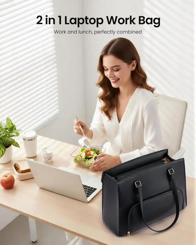 work bag with lunch compartment Lunch Tote Bag for Women 15.6 Inch Laptop Work Bag with Insulated Lunch Compartment Large Capacity Computer Handbag with Cup Holder for Business, Nurse, Teacher, Mommy
