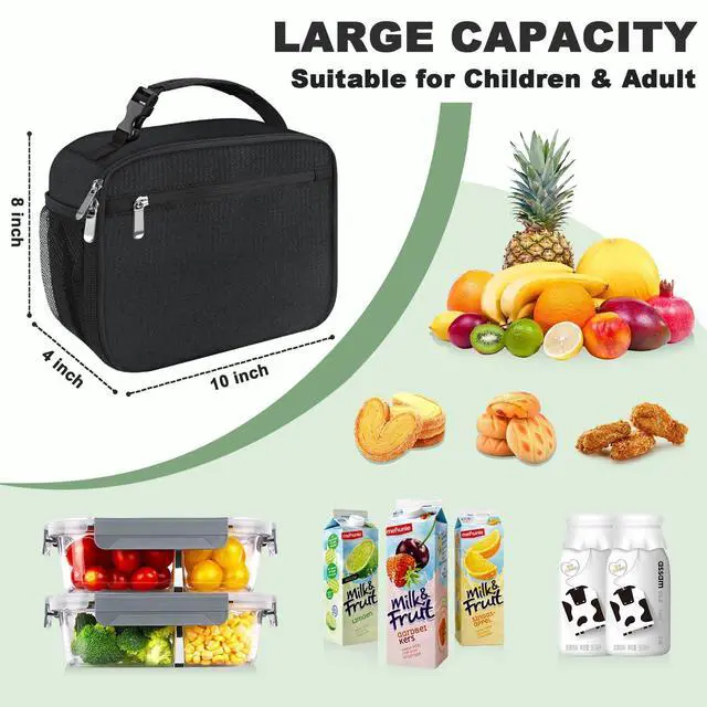 This lunch box features a generous yet slim design that measures 10" L x 4" W x 8" H. It can hold up to 6 L and stop wasting valuable lunch space