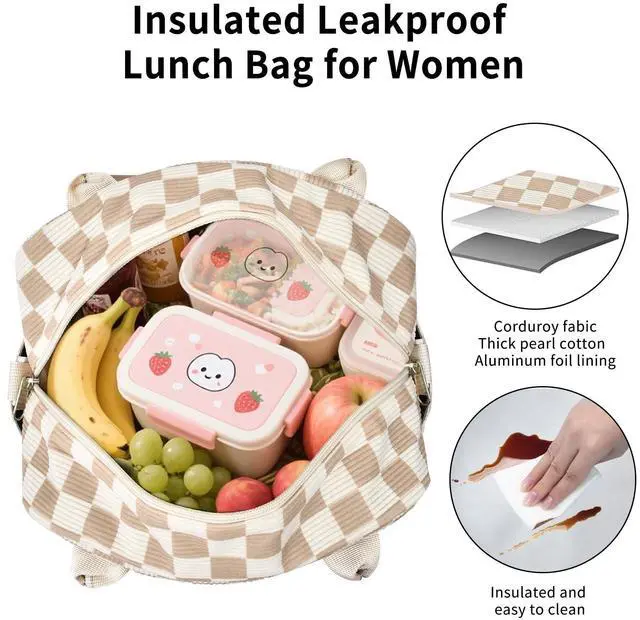 Insulated Lunch BagOYLOLA lunch box is made of soft and durable corduroy waterproof fabric, and the interior is made of thick inner heat insulation and leakage prevention material and foam insulation material, which can keep the food warm and fresh for a long time, leakproof even with ice inside.