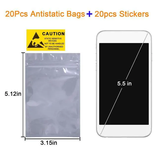Terokota 20PCS 3.1×5.1 inches Antistatic Bags with Double -Antistaic Performances to Keep Your Electronics Safety