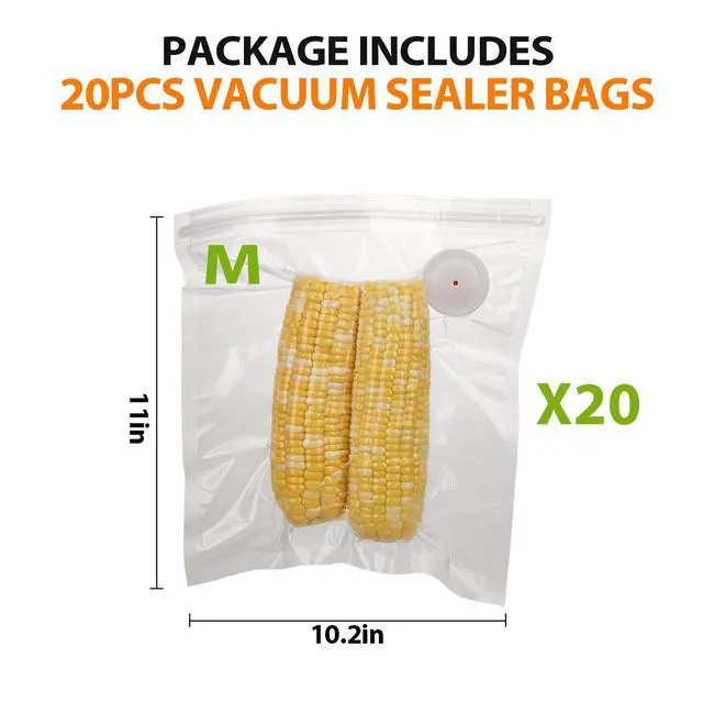 20 PCS Vacuum Sealer Bags for Food, BPA-Free Reusable Vacuum Zipper Bags with Upgraded Air Valve, Sous Vide & Meal Prep Vacuum Storage Bags, Compatible with Handheld & External Vacuum Sealer Machines