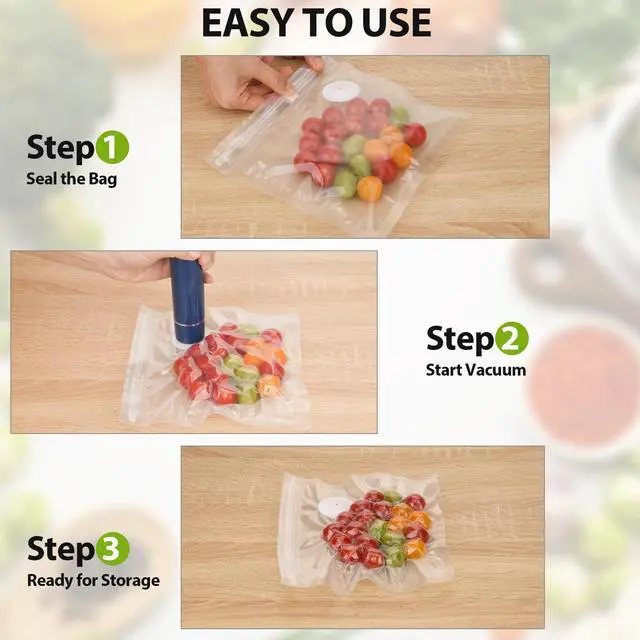 Easy to Use & Money Saving---20 PCS reusable vacuum bags are easy to use. No need cutting, heating sealing. A must-have kitchen helper for bulk food storage, locks in original flavors and keeps ingredients fresh longer. Make less waste, and Money saving.