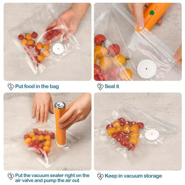 The unique valve design ensures the sealing of the vacuum bag, and the use of a handheld vacuum machine ensures maximum efficiency and performance in food preservation.