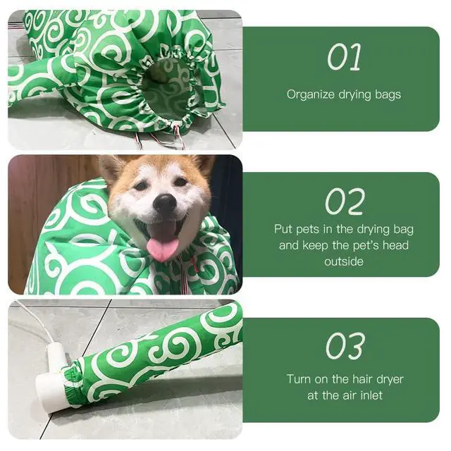 3. Versatile: exquisite workmanship and delicate stitches greatly enhance its durability and stability without fraying. It is not only a dog hair drying bag to effectively alleviate the shock of hot air blowing on dogs, quickly dry your pet's hair in a few minutes to avoid catching a cold in winter days, but an extra artifact to block pet's hair from flying around, no longer worry about water splashing or pet escaping, reduce cleaning workload to give you a neat, tidy and clean house.