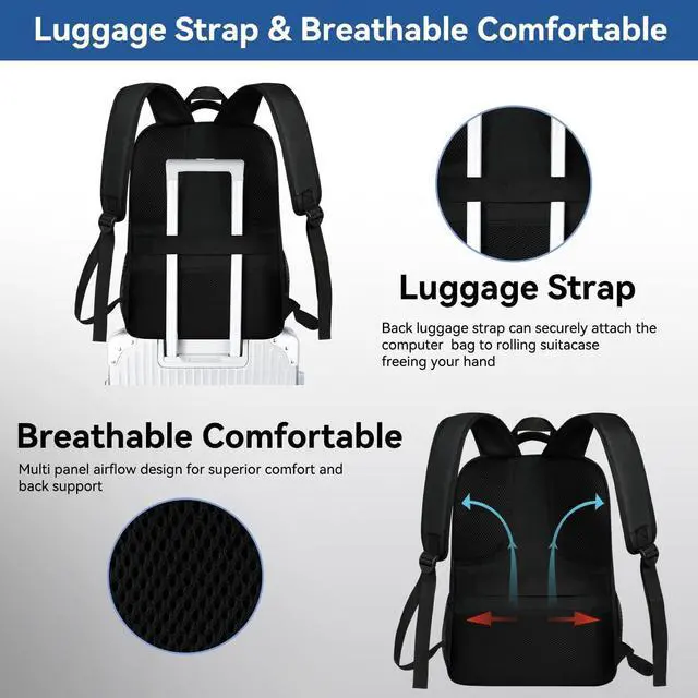 Practical & Convenient Voova business backpack backside comes with a luggage belt is great to slide over the luggage upright handle tube for easier carrying. It would stays in place well. As a men/women backpack, you would enjoy its fashionable, comfortable and convenient everywhere.