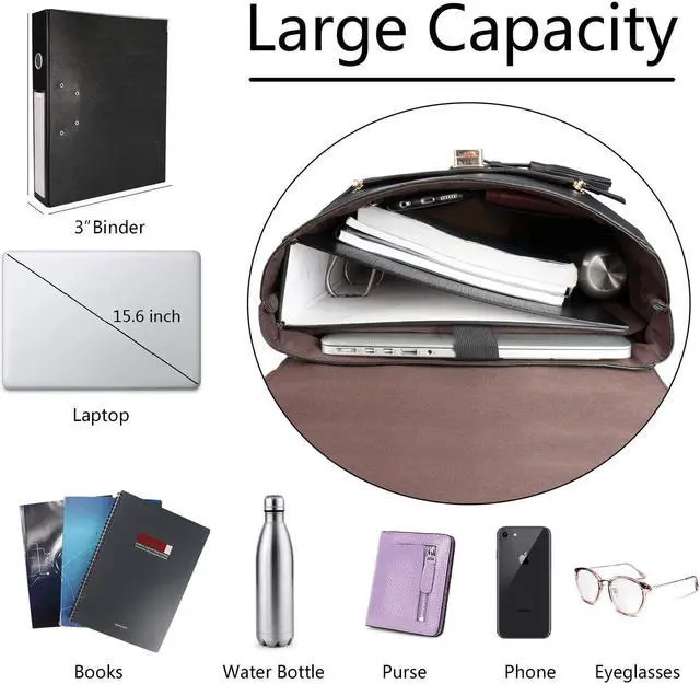 The women backpack has plenty space to hold stuff for daily necessities such as 15.6 inch laptop, 15inch computer, iPad, binder, kindle, books, notebooks, A4 files, cell phone, calculator, umbrella, wallet, clothes, cosmetic, a lunch boxes and so on.