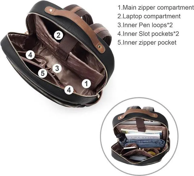 Top Quality Material: The laptop backpack is made of top vegan leather with polyester lining, which is durable for using. Simple and clean style with gold colored hardware and CLUCI logo, U-shaped zipper closure expand the roomy of womens laptop backpack. Reinforced stitching allows it to withstand heavy loads.