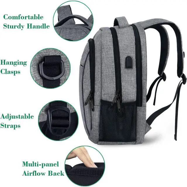 STURDY MATERIAL & SOLID: Made of Water Resistant and Sturdy Polyester Fabric with metal zippers. Ensure a secure & long-lasting usage everyday & weekend. Serve you well as professional office work bag, slim USB charging bagpack, back to college backpacks. 15.6 inch travel laptop backpack for daily using and organize