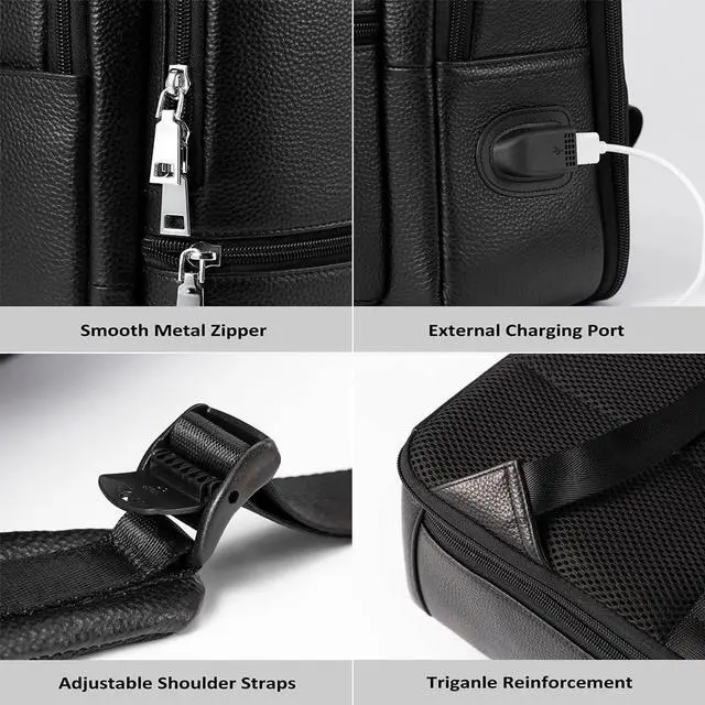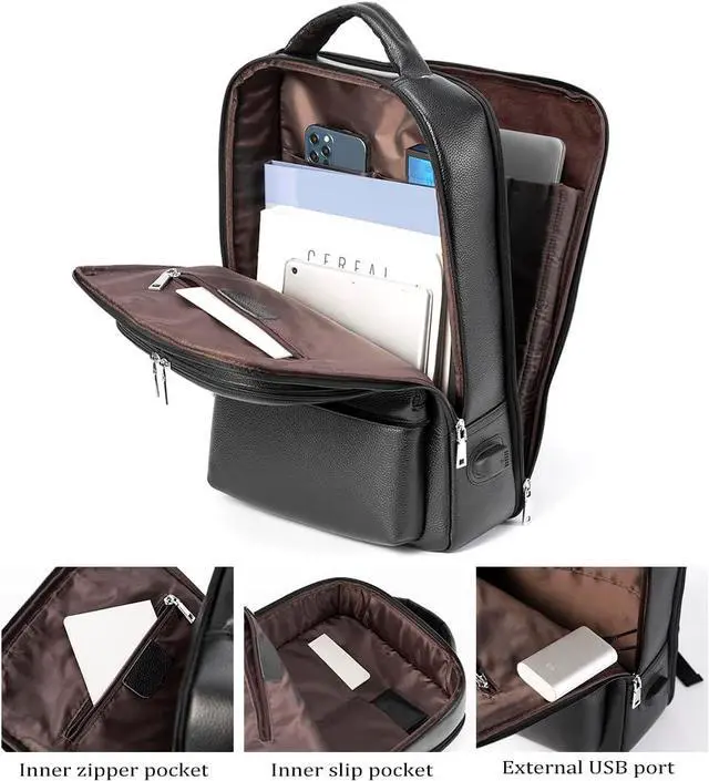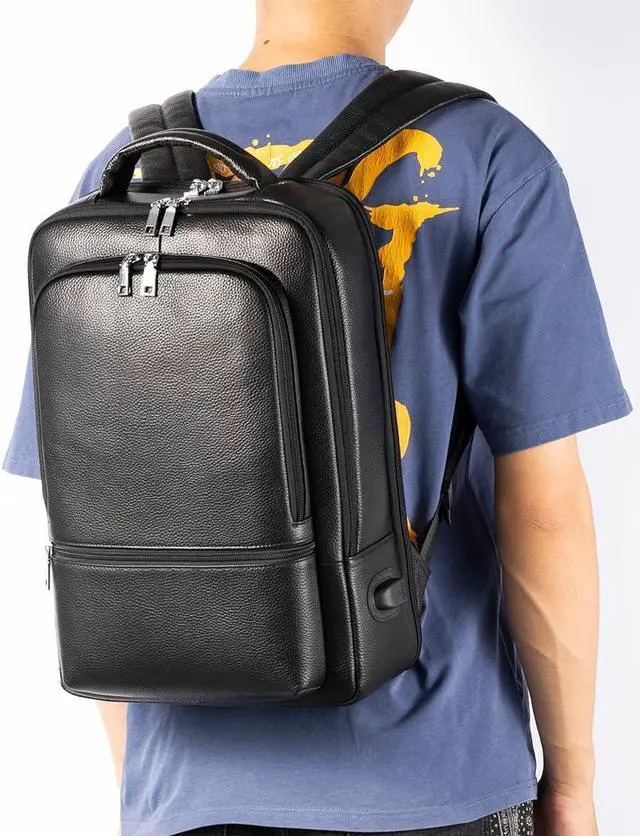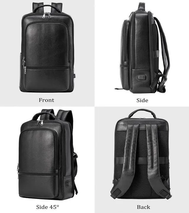 LARGE CAPACITY - The genuine leather backpack holds most laptops less than 15.6 Inches. Large main compartment roomy for daily necessities, such as A4 folders, magazines, tablet, chargers, power bank and clothes.