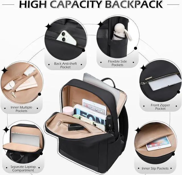 LARGE CAPACITY: Wide Open Teacher Nurse Backpack for women Made of high quality water resistant nylon fabric, metal double-way zipper pulls ensure extreme durability. Work backpack has a separate laptop compartment that it could hold 15.6 inch computer and protect laptop from moving; Casual daypack main compartment has enough storage space to hold your books or daily necessities