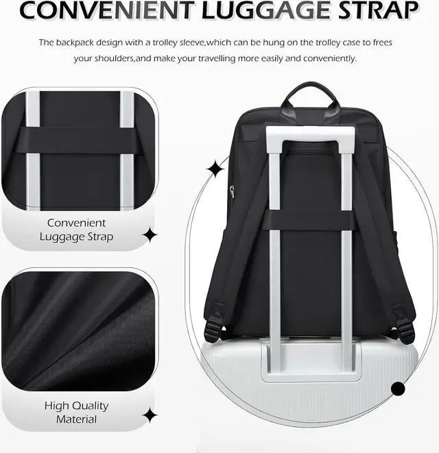 ANTI THEFT BACKPACK: Travel Backpack Women Comfortable, breathable back design offers you maximum back support; A luggage strap allows the large laptop backpack to slide securely over the handle of any rolling luggage for hands-free transportation, easier to carry. Computer backpack a hidden anti-theft pocket on the back protects your valuable items from thieves