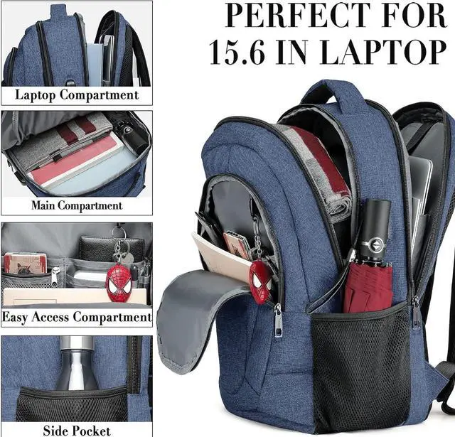 STORAGE SPACE&POCKETS: The main pocket of school backpack is equipped with a separate laptop soft compartment hold 15.6 -inch laptops and 15-inch, 14-inch and 13-inch Macbooks/notebooks. The soft sponge design will protect your laptop. Outside the compartment, a more spacious packing compartment roomy hold an iPad, mouse, charger, binder, books, clothes, etc. Mesh pockets are located on the sides of water bottles and compact umbrellas to keep your belongings organized and easier to find