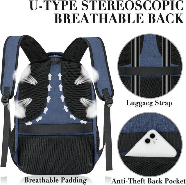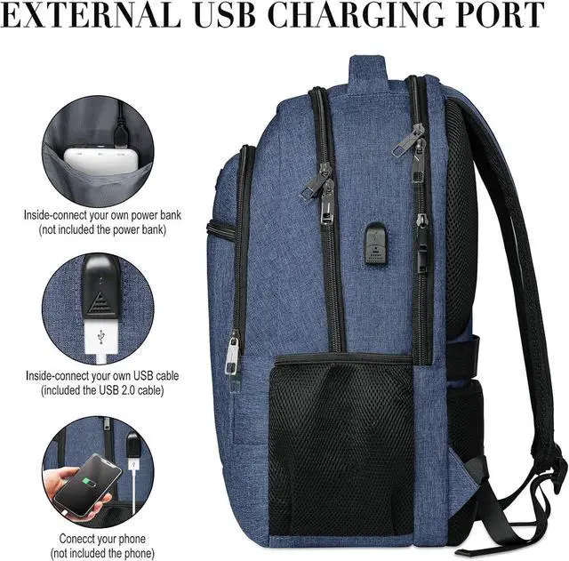 USB PORT &ANTI THEFT DESIGN: With built in USB charger outside and built in charging cable inside, this USB backpack offers you a more convenient way to charge your phone while walking. A luggage strap allows backpack fit on luggage/suitcase, slide over the luggage upright handle tube for easier carrying. With a hidden anti theft pocket on the back protect your valuable items from thieves, please be assured that the use of