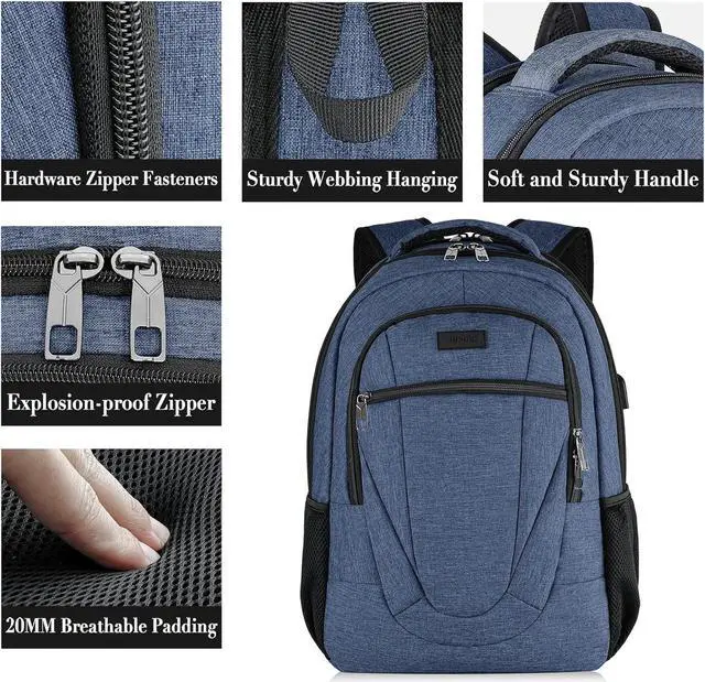 Backpack for Woman and Men, Travel Laptop Backpack with USB Charging, Waterproof College Back Pack for 15.6 IN Laptop Backpack, Adult Business Computer Travel Backpack, Blue