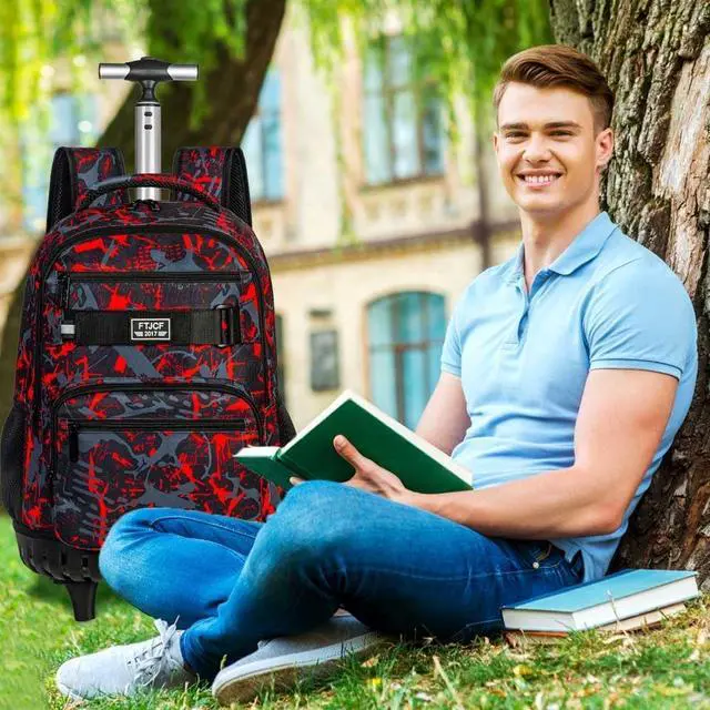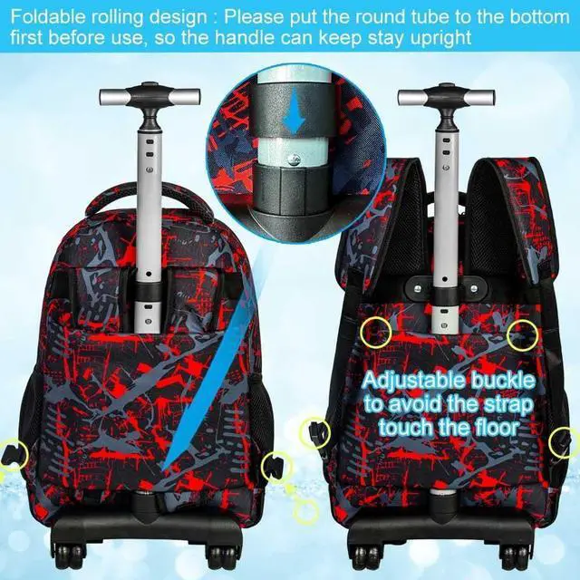 Backpack With Wheels Material: The backpack on wheels made of high quality water resistant material. Sturdy smooth zipper and reinforced thread stitching at the joints. Make it more durable.