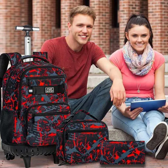 Rolling Bookbag Size: Roller backpack 21* 12.5 *6" (L*W*H), lunch box (shoulder straps are removable), pen case. Multi-piece storage, can be used as a roller backpack for college and travel.