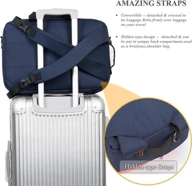 Convertible -- This multifunctional backpack features a top carry handle, a side carry handle and two hidden adjustable/detachable shoulder straps to offer multiple carrying options. With the buckles and hooks, you can convert it to backpack or single shoulder bag or briefcase according to your requirement.