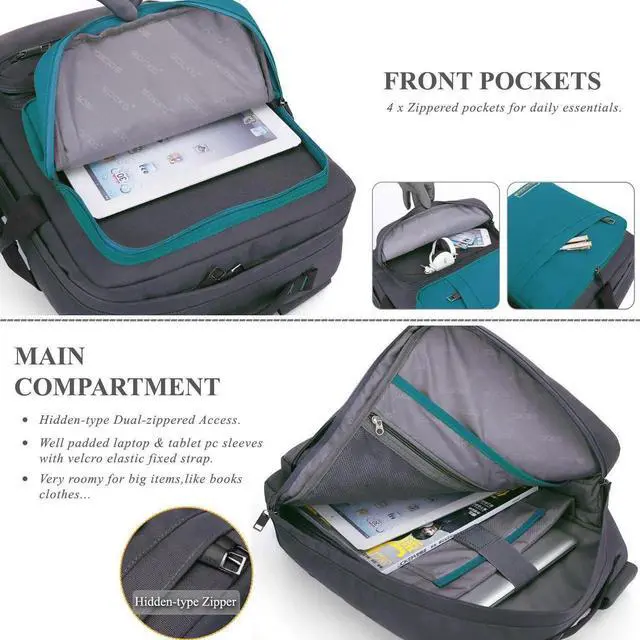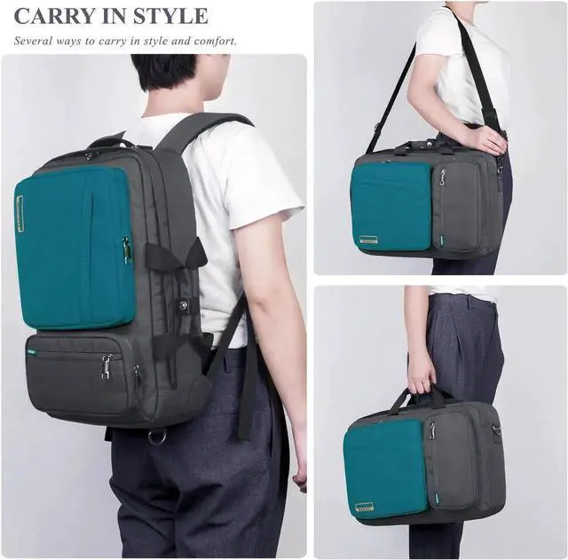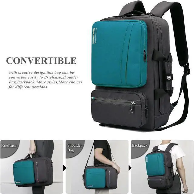 Convertible -- This multifunctional backpack features a top carry handle, a side carry handle and two hidden adjustable/detachable shoulder straps to offer multiple carrying options. With the buckles and hooks, you can convert it to backpack or single shoulder bag or briefcase according to your requirement.