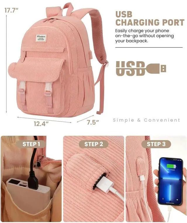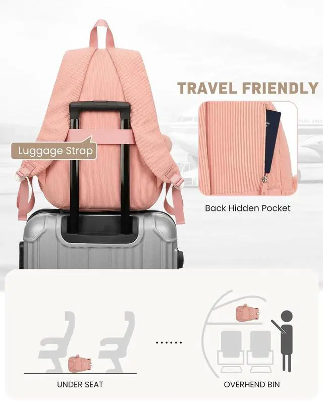 Perfect size large corduroy backpack: 17.7 * 12.4 * 7.5 inch (H x L x W), fits for 15.6 inch laptop and big folders.