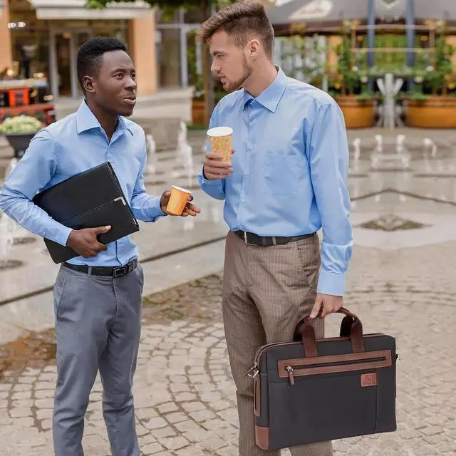 Portable Travel Business Briefcase for Men: It has a comfortable and durable handle. It has an adjustable and removable shoulder strap with a leather pad to relieve your shoulder.It can stand by itself on the ground. So, it's a portable work briefcase for men.