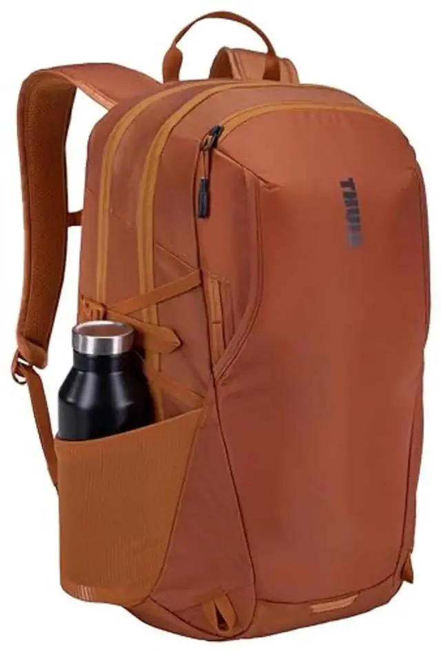 Mesh exterior side pockets stretch to hold a water bottle, power brick or umbrella