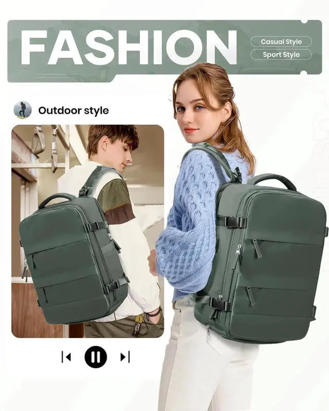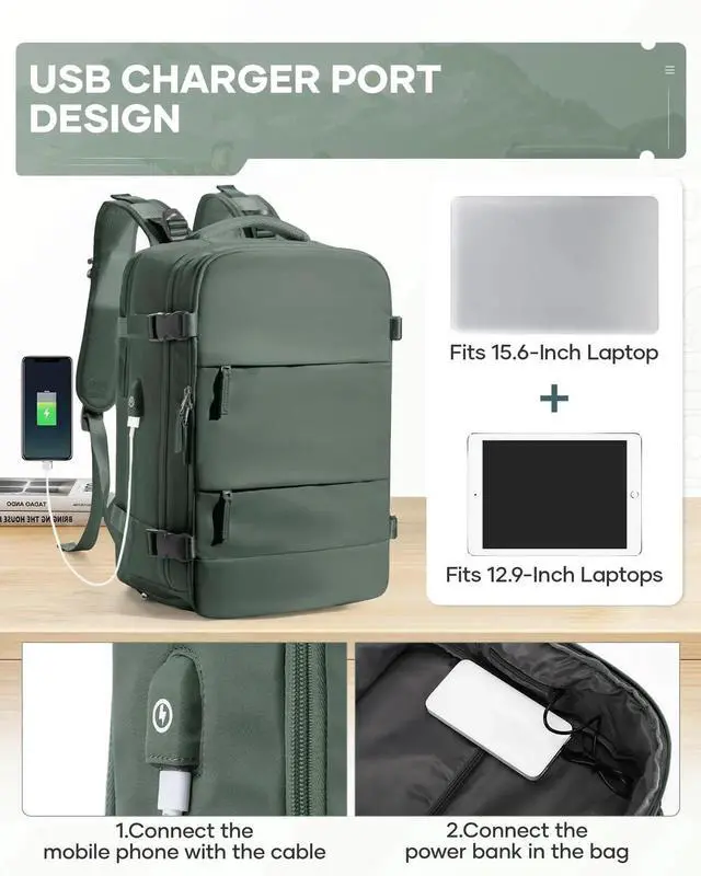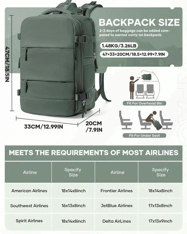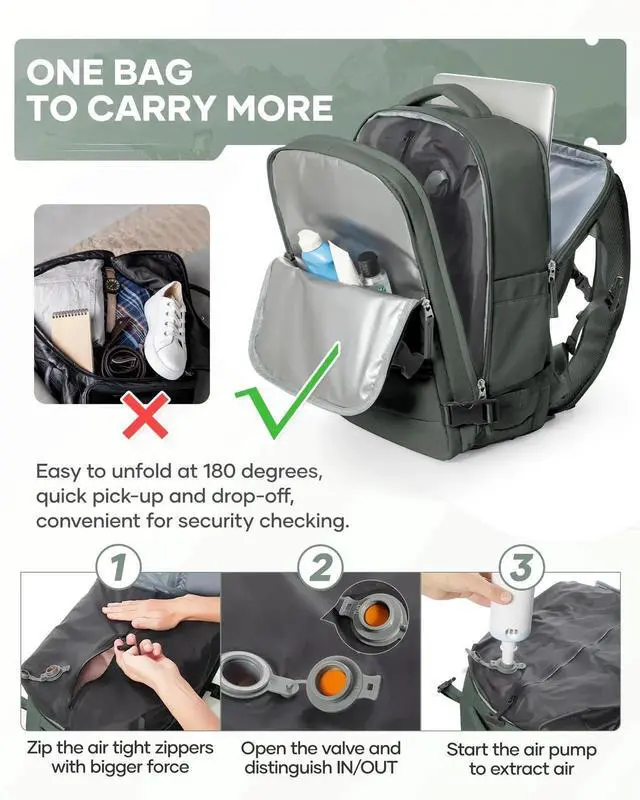VENATIN Vacuum Backpack Travel, Travel Backpack with Vacuum System, Vacuum Seal Compression Backpack with Pump for Travel, Flight Approved 18x14x8 inches Laptop Bag, Army Green