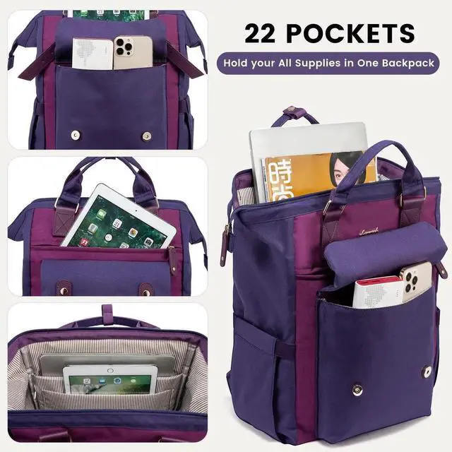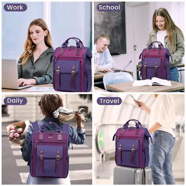Stylish & Functional Design : This laptop backpack for women combines elegance with practicality. Featuring padded compartments for laptops and tablets, it keeps devices safe while maintaining a sleek design. Adjustable straps ensure comfort, and the wide opening with smooth-gliding zippers offers easy access to items. Perfect as a teacher bag or nurse bag.
