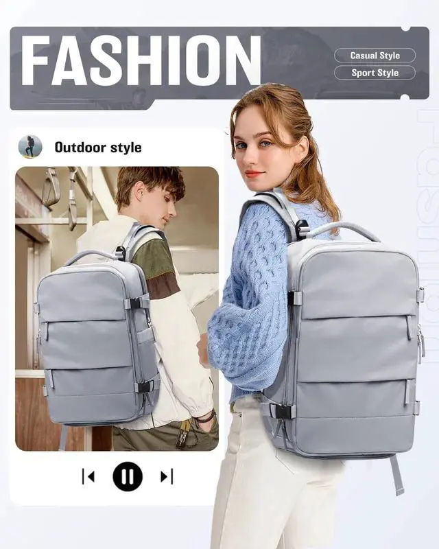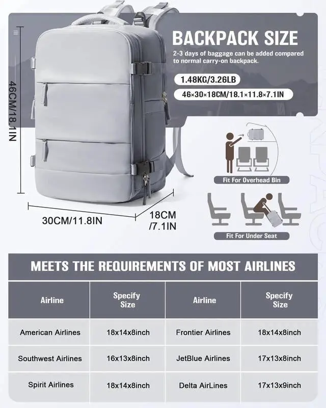 VENATIN Vacuum Backpack Travel, Travel Backpack with Vacuum System, Vacuum Seal Compression Backpack with Pump for Travel, Flight Approved 18x14x8 inches Laptop Bag, Grey