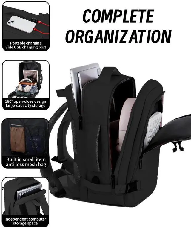 USB Charging Port Charge on the Go This travel backpack is equipped with a built-in USB charging port, perfect for keeping your devices powered while on the move. Whether you're using it as a carry-on backpack for airplanes or commuting to work, simply connect your power bank inside and enjoy convenient charging for your phone, tablet, or other devices.