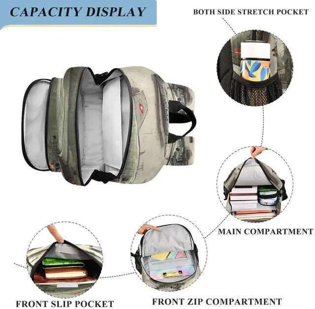 main compartment--books, thin clothes, lunch boxes, headset, camera and more