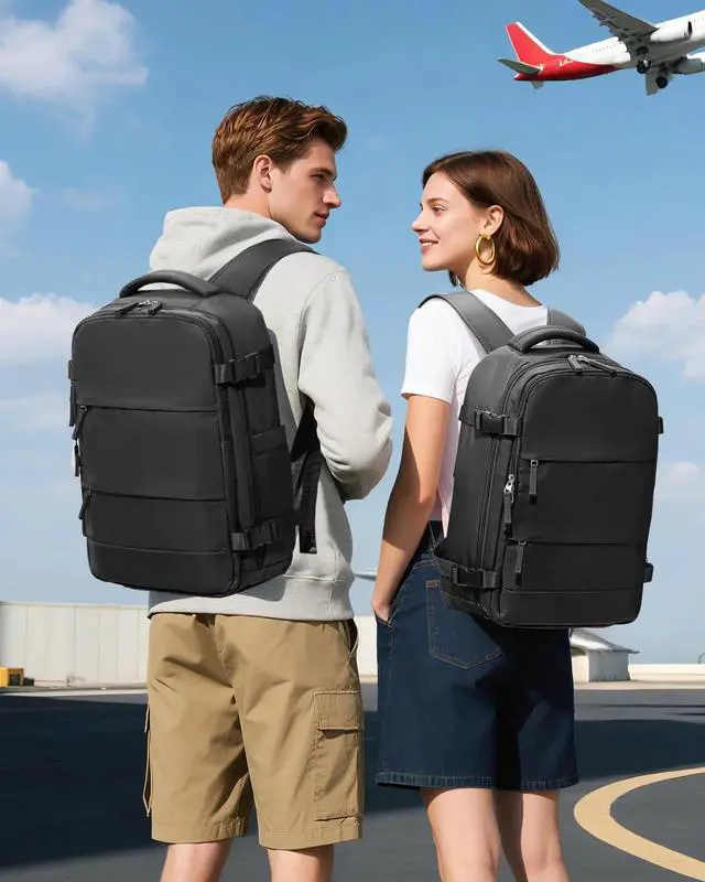 Air Travel Backpack: The size of this vacuum travel backpack is Height=47CM(18.5 INCH)*Width=33CM(12.99 INCH)*Length=20CM(7.87 INCH), which not only meets most airlines' maximum hand baggage size requirements and helps you save on check-in baggage fees, but also comes with a vacuum compression system that allows you to carry more clothes than ever before.