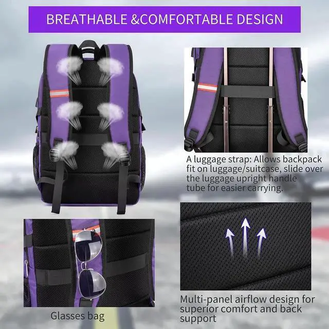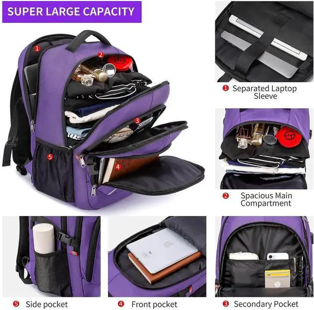 Travel Laptop Backpack, 17.3 Inch Large Capacity College School Bookbags, RFID Anti Theft Pocket, Durable Water Resistant Backpacks Computer bagpack for Women Girls Teenagers Casual Daypack, Purple