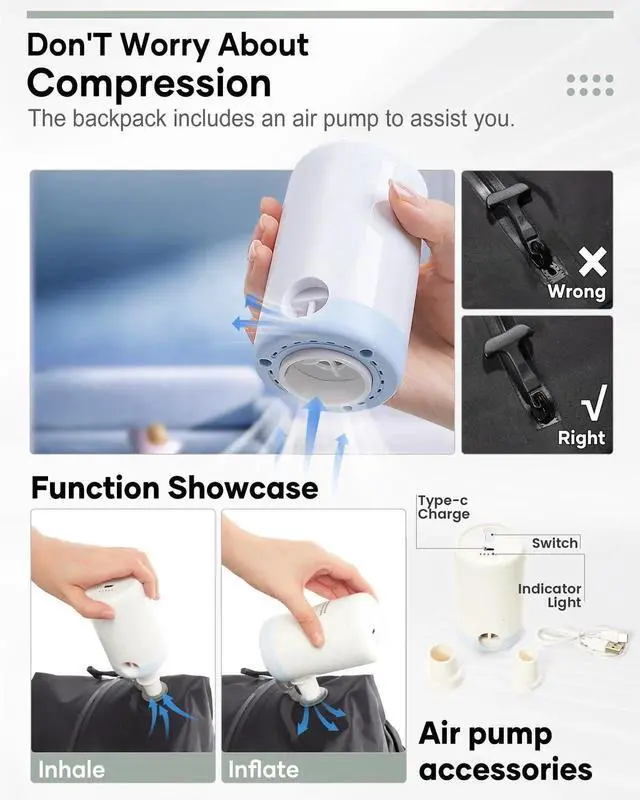 Vacuum Backpack Travel, Air Backpack with Pump Personal Item Carry On Backpacks Flight Approved Laptop Work Seal Compression Bags Men Women Vacpack Business College Casual Daypack Dark Green