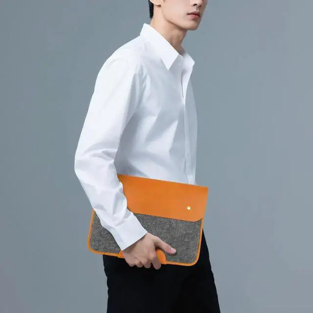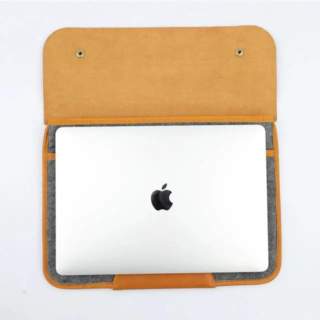 NGGU Premium Felt & Leather Laptop Sleeve - Durable 13-16 Inch Case for MacBook, Tablet & Laptop - Stylish & Protective - Small & Orange