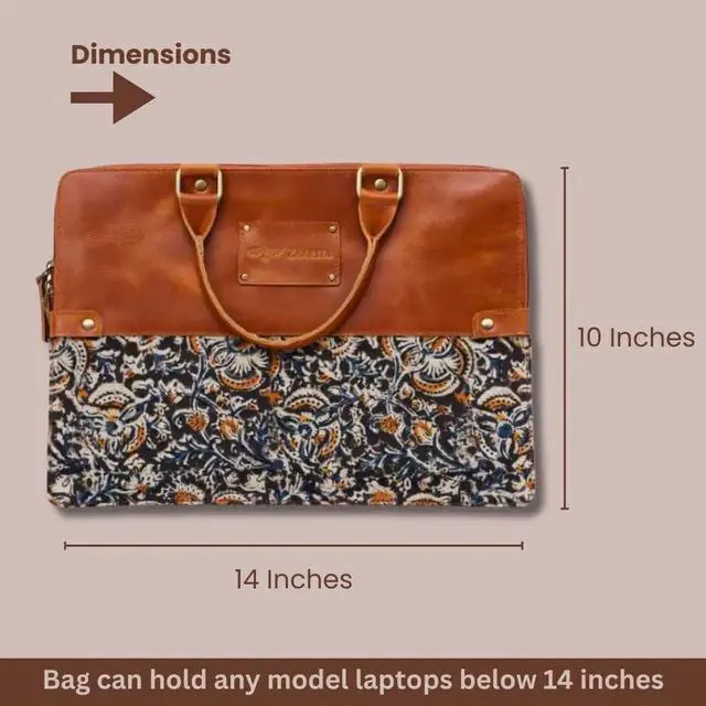 ZAARIYA Handcrafted Laptop Bag/Sleeve/Case for Women ^^ Made From Leather With Handblock Fabric - Ideal For 13 Inch Devices