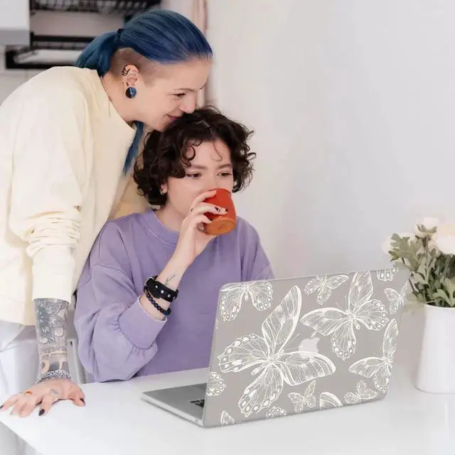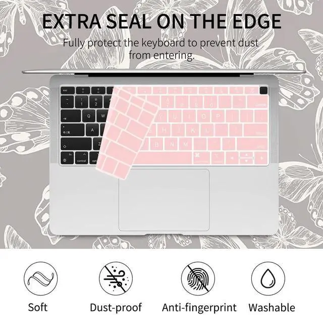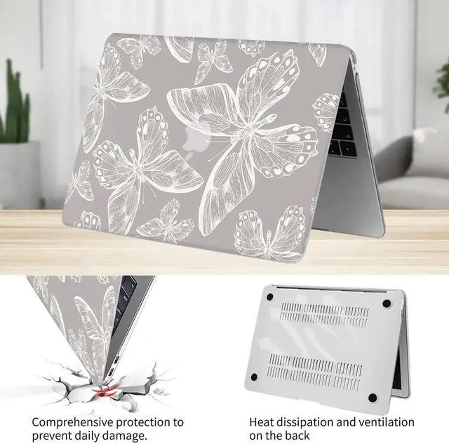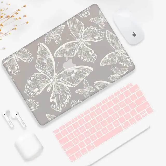 Seorsok Compatible with MacBook Air 13 Inch Case 2020 2019 2018 Release A1932 A2179 M1 A2337 Touch ID, Plastic Hard Shell Case with Keyboard CoverButterflies