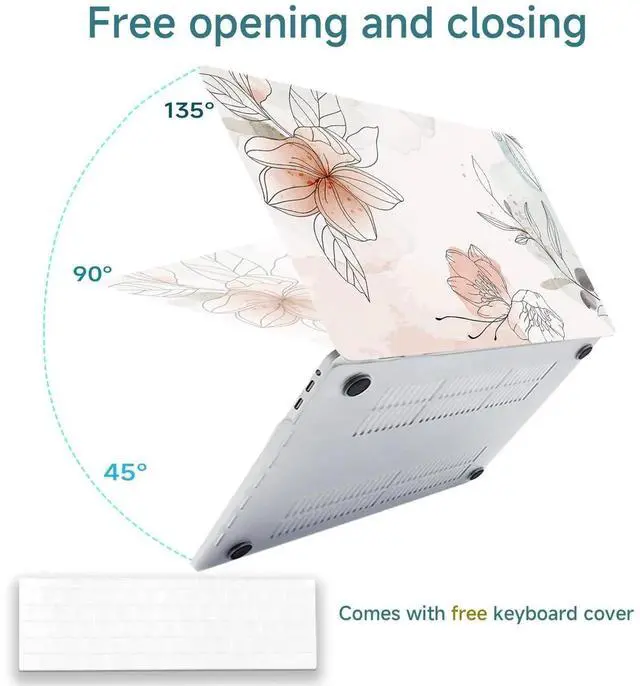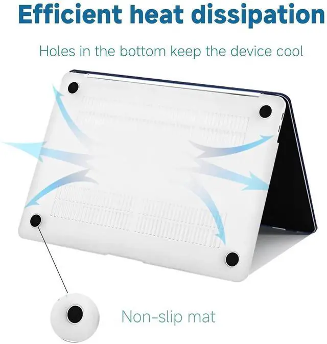 [Ease of Use]: The concealed clasp design ensures a secure fit of the protective case on your laptop, preventing any risk of detachment. The hollow design on the bottom protective case enhances heat dissipation for your MacBook and features anti-slip foot pads. It comes complete with a keyboard film for superior MacBook protection.